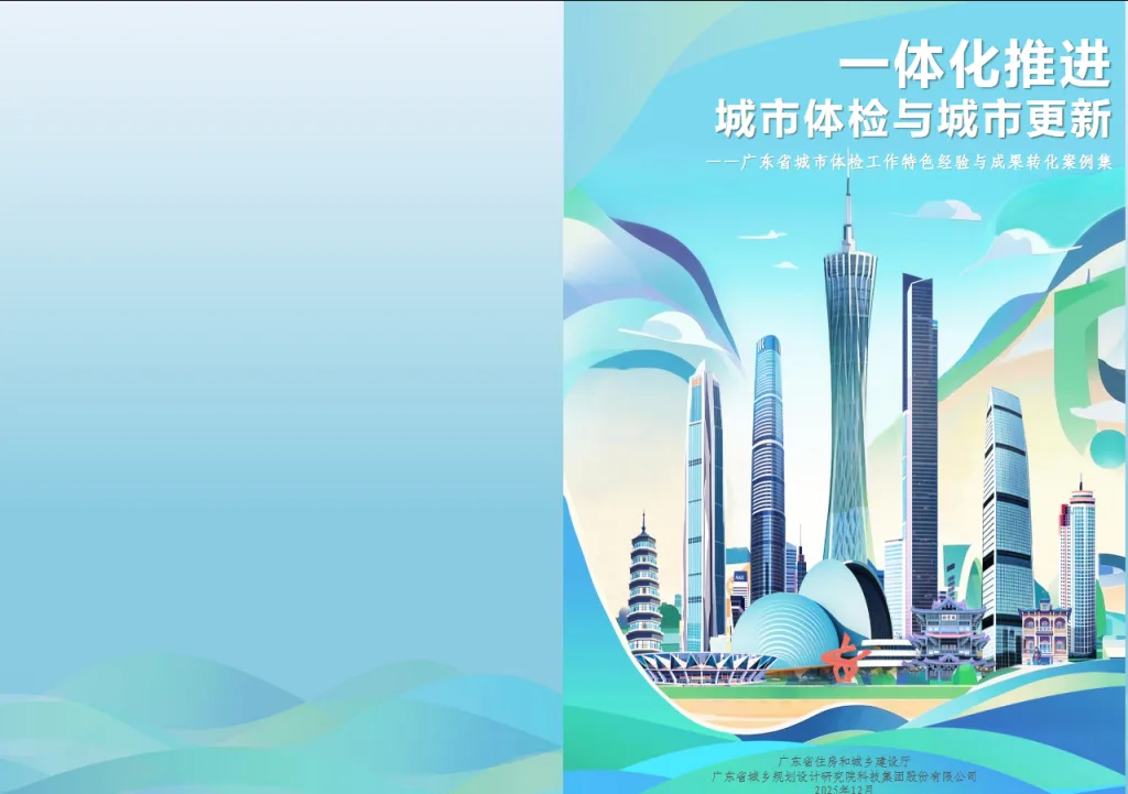 《案例集》由广东省住房和城乡建设厅、广东省城乡规划设计研究院科技集团股份有限公司共同编写,详细介绍了广东在2019年启动城市体检工作、2021年实现地级及以上城市体检“全覆盖”、2024年在全国首批开展县城体检试点工作等重要节点形成的工作模式、工作方法与典型案例。