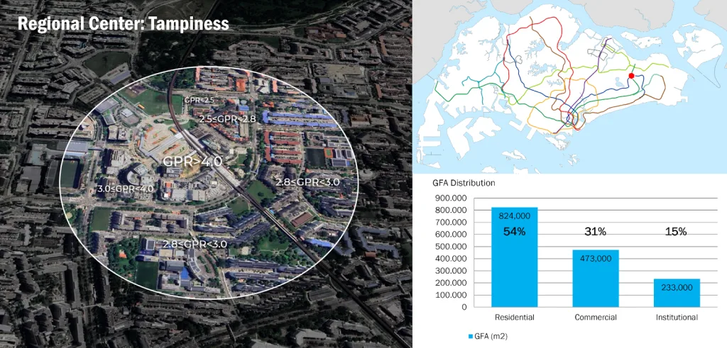 Regional Centers:区域中心:两条线路交汇,通常为地区中心,支持更加均衡的混合用途开发,住宅面积为50%至60%,商业用途为30%,公民用途为10%。新加坡的坦平斯站将这一模式描述为连接新加坡东部主要就业集群的双线交叉路口。胡志明市未来的特龙地铁站,即地铁1号线和7号线交叉路口,将在周边城市建设和七号线建设实现后,成为重要的托德区,从根本上改变了该地区的三价型。
