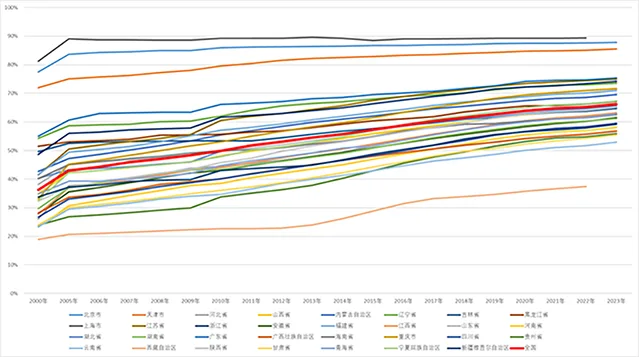 在部分先发省份,如北京、上海、天津、浙江等,城镇化率基本完成度量现代化水平的任务,其参考价值已不大,省级政府工作报告和各类政策文件中也不再过分注重数量的增长,未来应更加注重促进外来人口的城镇融入。在城镇化率低于或与全国平均水平持平的省份,城镇化率仍有一定提升空间,城镇化率指标仍有较大参考价值,能够反映农村人口迁入本省各等级城镇等的情况,可在相应政策文件中科学设定适宜的城镇化率目标。建议省级层面强化对市县的指导,引导各地因时因地因功能推进城镇化,但不宜再在市县层面考核指标完成情况。