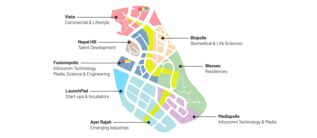 因此,one-north 的开发需要与典型的科技园区有所不同。它不仅仅被用作办公和科研空间,该地块将包含多种用途,包括住宅和娱乐设施。one-north 被设想为一个自成一体的区域,包括一个由学校、企业和研究中心组成的社区,以及研究人员工作、生活、娱乐和学习的所有所需。它将成为一个通过物理邻近性和全年组织的广泛活动而联系起来的社区。人们希望在一个精心设计的物理空间内,不同组织和公司的相互交融,能够促进互动和思想碰撞,从而激发创新和新的想法。其中一些想法可能会转化为可以在技术企业家生态系统内商业化并获利的发明,这些企业家将投资于开发产品和服务。one-north 不仅仅是一个物理空间,NSTB 还可以在政策方面对其进行支持。