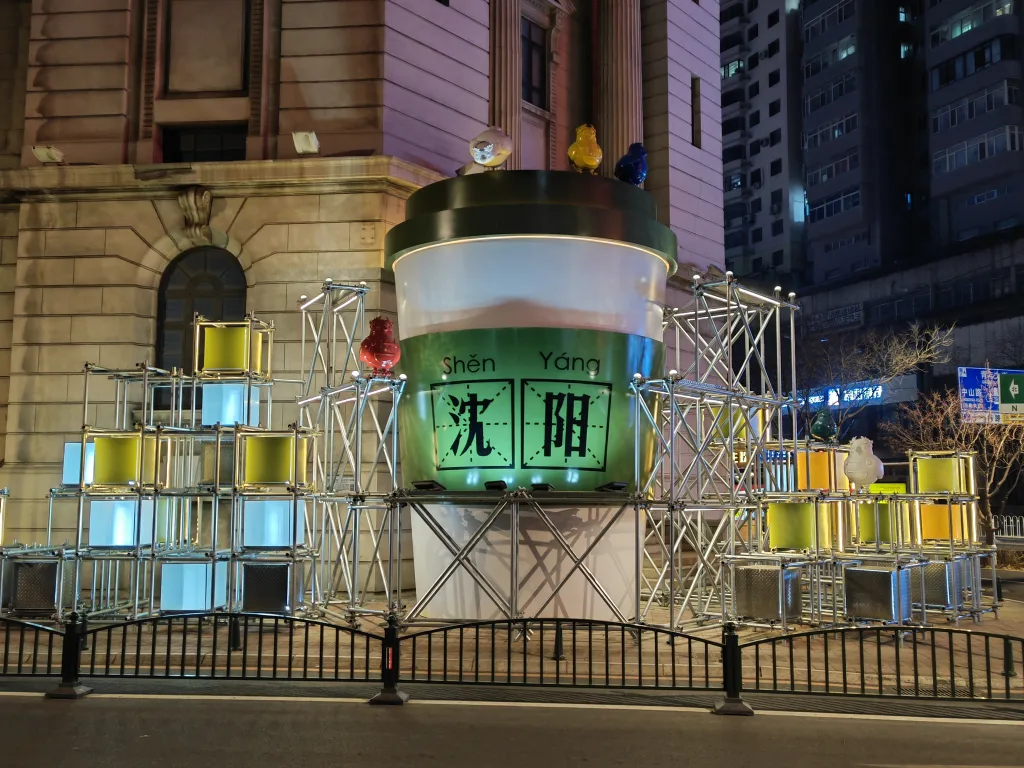 八经街的新场景建设,首先从重构街区辨识度开始。二期升级后亮相的 “6902441781234” 条码斑马线,成为引爆社交平台的创意地标 —— 前五位 “69024” 锁定 “中国沈阳” 地域身份,后八位 “41781234” 对应街区经纬度坐标,让冰冷的数字转化为游客与城市对话的媒介。此外,140 只渐变色陶瓷马克杯组成的幕墙、巨型咖啡杯与吉祥物 “八鸽” 融合的文旅装置,与周边历史建筑巧妙呼应,形成 “一步一景、一景一故事” 的打卡体验。这些创意地标并非孤立存在,而是将百年商埠历史与现代消费需求相结合,让游客在拍照打卡中自然触摸城市记忆。