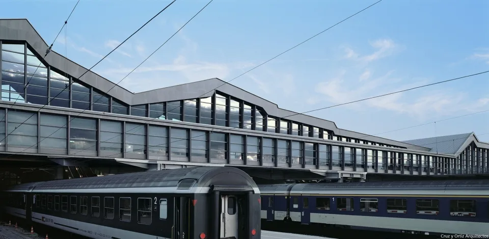 为了实现这一目标,原先与月台相连的地下通道被替换为带有商店设施的、抬升的步行走廊,从而恢复了火车站大厅原本的重要性。屋顶的轮廓能够从城市的各个地点看到,成为火车站翻新后最主要的特征。整面屋顶横跨在轨道上方,其本身也成为一处瞩目的景点。