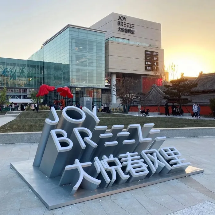 建筑改造方面,大兴大悦春风里将原老旧商场的建筑格局改造为适应体验式消费升级的当代购物中心。项目在设计理念上,以创新精神在“塑文化、建地标”上不断发力,便以“留、改、拆”代替“拆、改、留”,承袭了项目周边地标火神庙的既有文化,以“灯笼”外型设计外立面,规划了“一个盒子+两个街区”的建筑形态,打造了前有山、后有院、有花径、有流水的景观,传递了“与人为善、如沐春风”的生活美意,不仅焕新城市面貌,更为内容升级提供了场景容器。