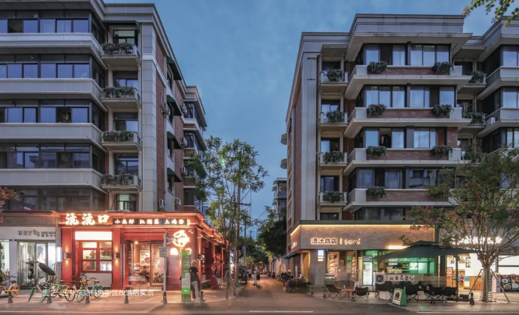 玉林东路特色街区是成都市老城区内高端要素集聚、国际交流频繁、城市功能完善的特色片区之一,沿线共153家商铺,总营业面积9000余平方米,曾面临交通拥堵、基础设施老化、人居环境较差、年轻人大量流失、商业逐渐衰败、街区活力减弱等问题。2021年起,武侯区以“烟火玉林·优雅成都”为目标,坚持“党建引领、政府负责、社会协同、居民参与”的思路,从空间、内涵、功能、机制着手,实施“惠民、幸福、动力、颜值”四大工程,统筹推进“由街区打造带动社区治理、片区发展”的城市更新模式,焕新沿线商铺产业,促进历史文化遗存、烟火市井生活、时尚潮流街区交相融合,打造公园社区幸福生活新场景,创造“回归老城、更新老城、活化老城”的成功典范。
