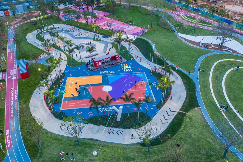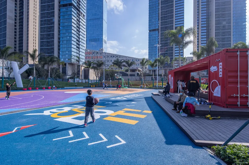 此外,公园还具备多元社交属性,可承接音乐会、社区联赛、市集等活动,清晨有老年人在健身区活动筋骨,午后是家庭休闲的惬意时光,傍晚则成为年轻人释放活力的运动主场,真正实现 “全龄段覆盖、全时段激活”。其创新模式不仅为深圳都市中心区临时用地改造提供了可复制范例,更以 “近距离、随时享” 的运动体验,重新定义了社区公园与城市生活的融合方式。